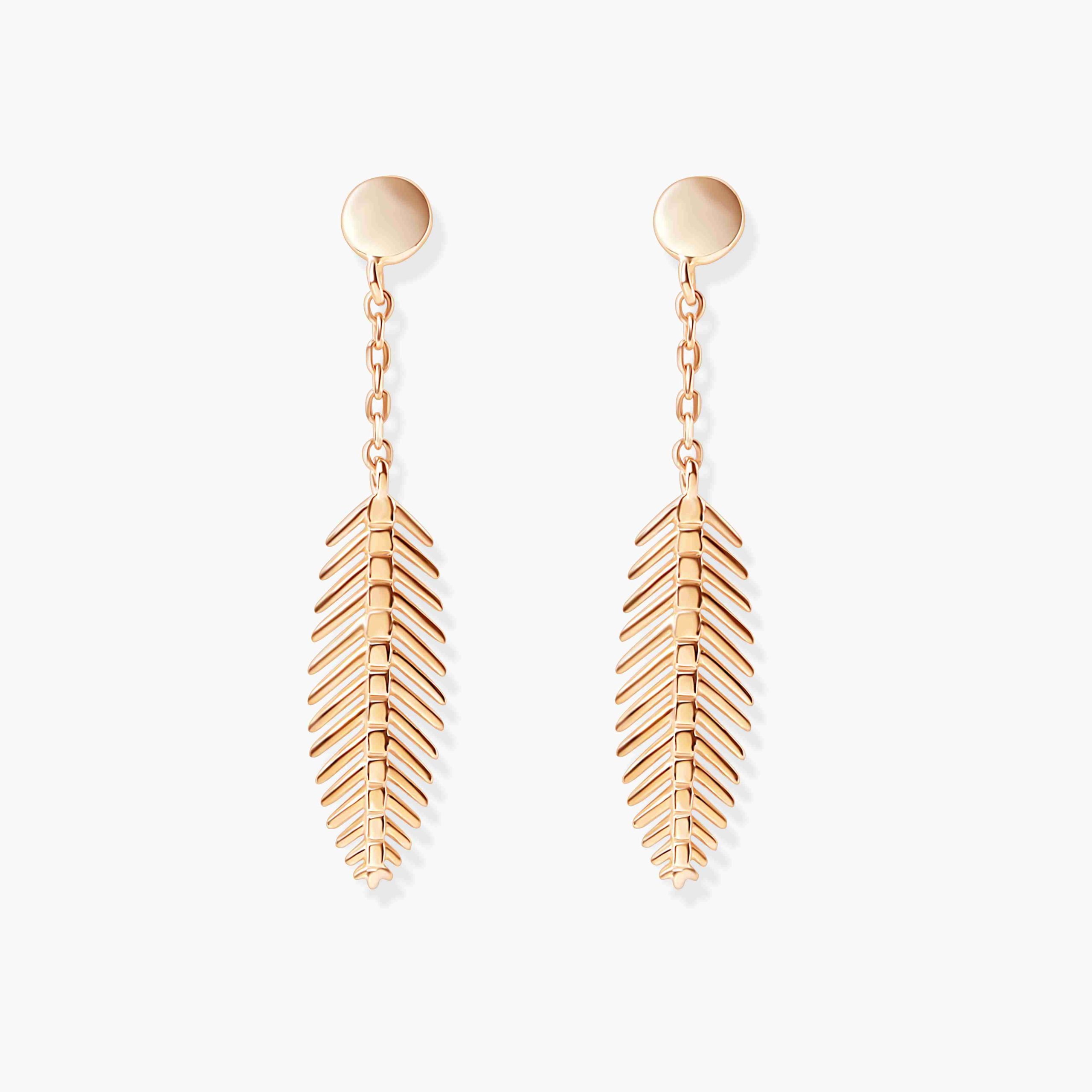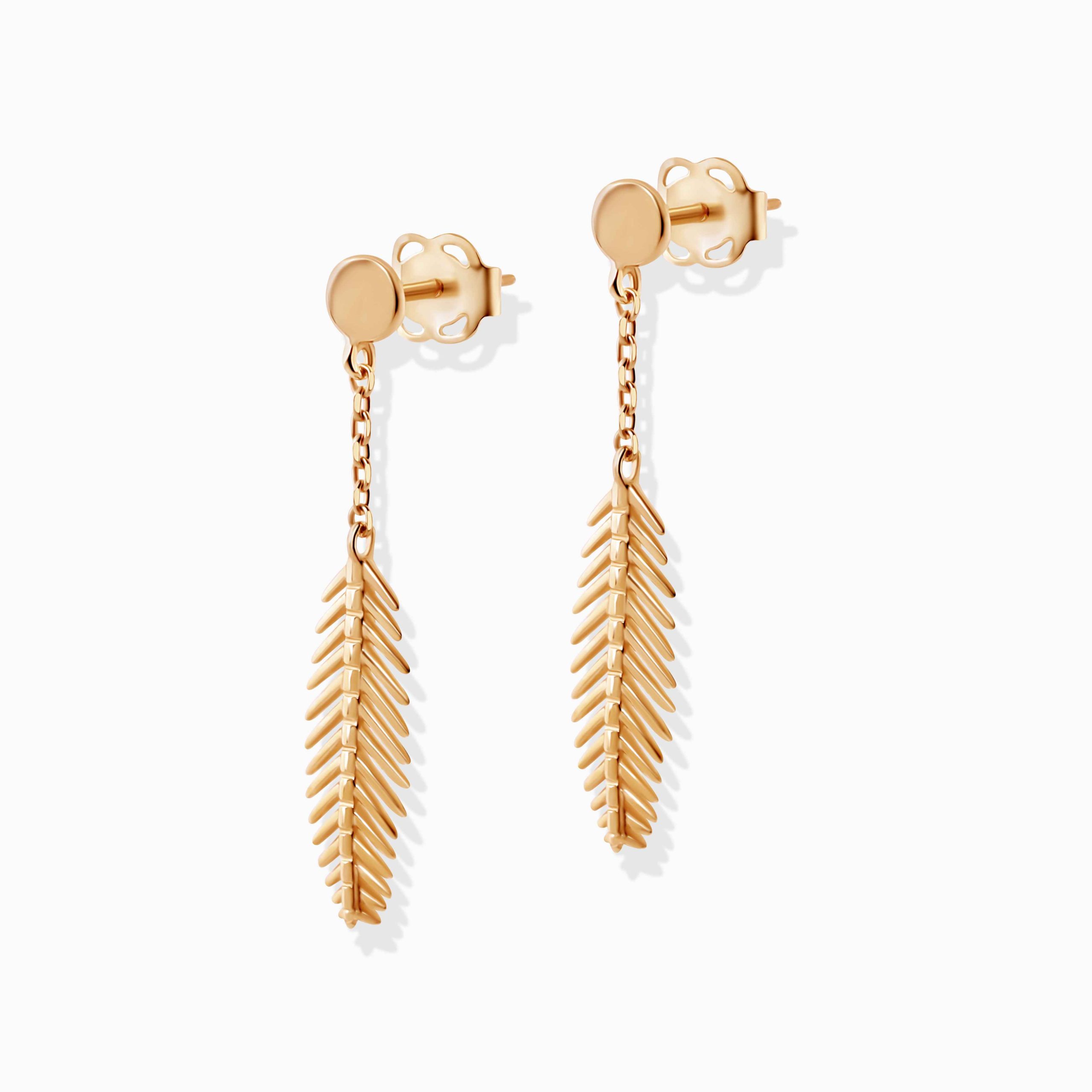 14KY earstuds hanging leaf 14.6x4mm